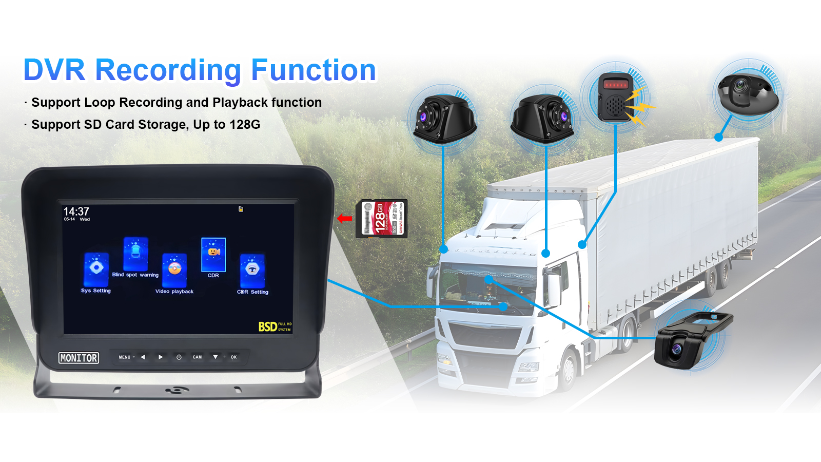 Comhoiriúnacht ildánach:Carleader 10.1 Feithicil orlach Córas Monatóireachta Braite Spota BSD BSD BSDTacaíonn sé le scáileáin 7/8/10.1-orlach, ionchur cumhachta DC 12V-36V, agus feidhmíonn sé i dteochtaí foircneacha (-20 ° C go 70 ° C).