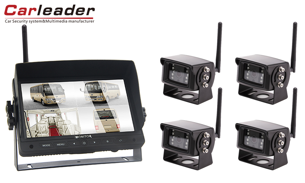 CarleaderCóras Ceamara Taispeána Scoilte 7 Inch 2.4G Digiteach Gan Sreang 2CH, Córas monatóireachta gan sreang Ardfheidhmíochta le tacaíocht 2 radharc taispeána slipt, ag dul i ngleic le ceamara gan sreang 2pcs. Painéal digiteach 7 orlach, cóimheas íomhá 16: 9, taifeach 1024 x 600 (RGB), soiléireacht ard a sholáthar don tiománaí maidir le taithí tiomána.