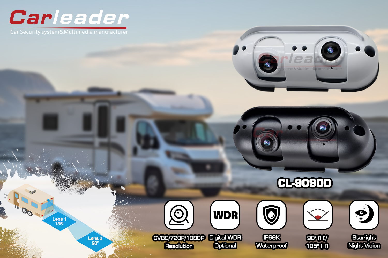 CarleaderAHD Starlight Ceamara Radharc Cúil Dual Lionsa oiriúnach Do RV Motorhome, ceamara cúil AHD uirlisithe príobháideach ó Carleader, dearadh dé-lionsa a ligeann don úsáideoir feidhmíocht infheictheachta soiléir a bheith acu ar radharc cúil atá gar agus i bhfad i gcéin. Déanann a tithíocht cóimhiotal alúmanaim agus rátáil IP69K an ceamara níos daingne agus níos marthanaí in aon aimsir chrua. Ní hamháin go bhfuil an ceamara seo oiriúnach le haghaidh feithicle tromshaothair, mar shampla trucail, bus, forklift, etc; oiriúnach freisin le haghaidh feithicle mótair, cosúil le RV agus carbhán.