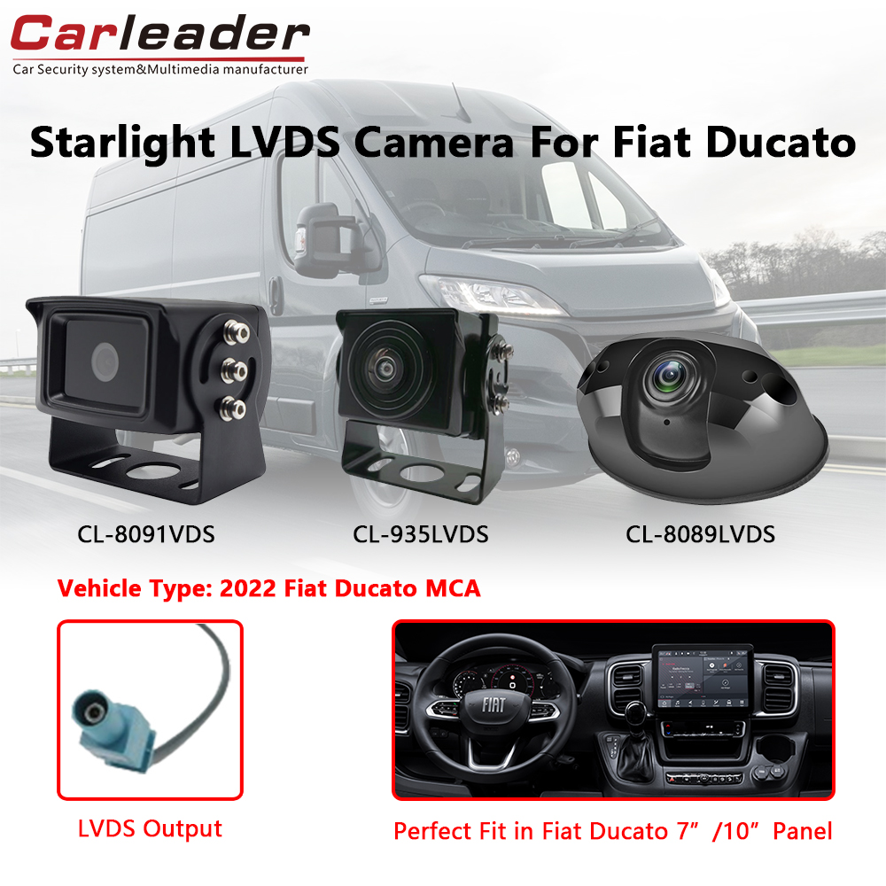 Táimid ar bís a thabhairt isteachCeamara Aisiompaithe Fís Oíche Lándath Carleader LVDS Do Fiat Ducato, atá deartha go speisialta chun oibriú gan uaim leis an scáileán bunaidh ar bord den veain FIAT DUCATO. Déanann gnéithe le teicneolaíocht fís oíche starlight taithí tiomána Fiat Ducato Driver níos sábháilte agus níos taitneamhaí trí radharc ildaite agus níos soiléire a sholáthar ar an timpeallacht fiú i dtimpeallacht dorcha. Anois tá samhail ceamara 3 ag Carleader ar fáil le haghaidh cónascaire LVDS.